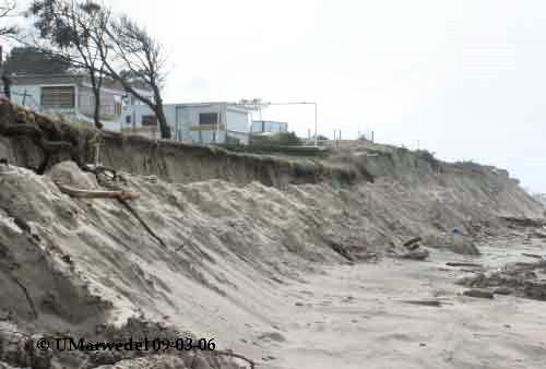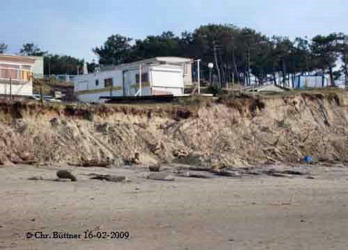 Mobilhomes des Campingplatzes gefährlich nahe am Rand der Düne