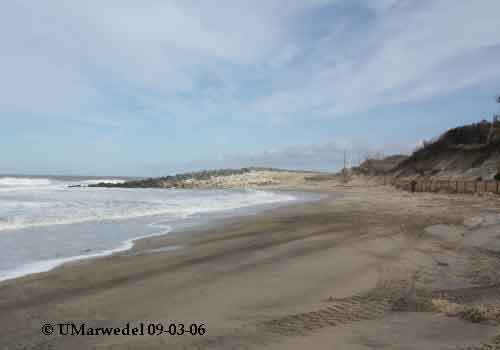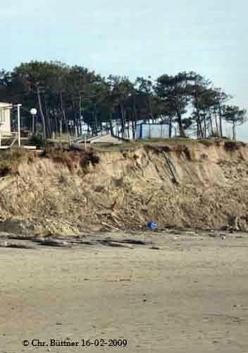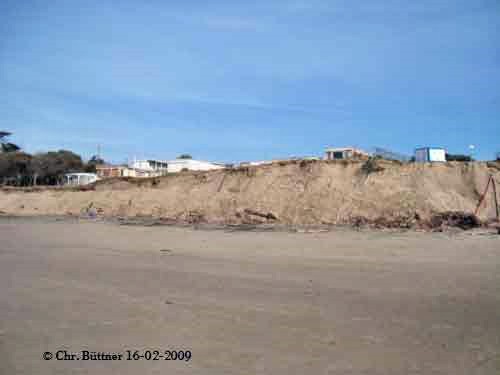 Am Fuß der Düne am Campingplatz ist ein Sandwall aufgeschüttet worden, der aber nur einen kleinen Teil des Campinggeländes betrifft.