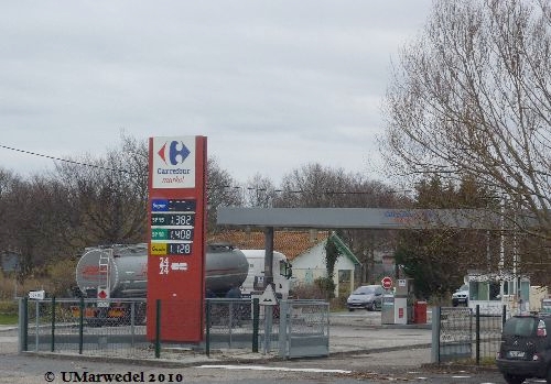 Auch die Tankstelle hat einen neuen Namen. Geblieben ist jedoch das gegenüber den preisgünstigen Tankstellen in Lesparre höhere Preisniveau.