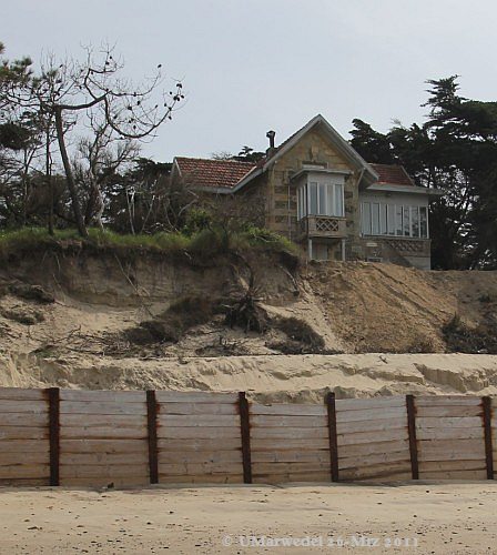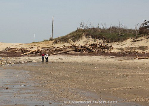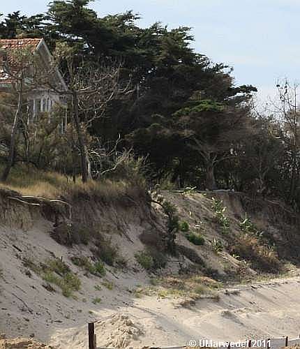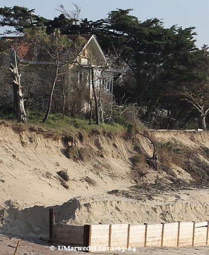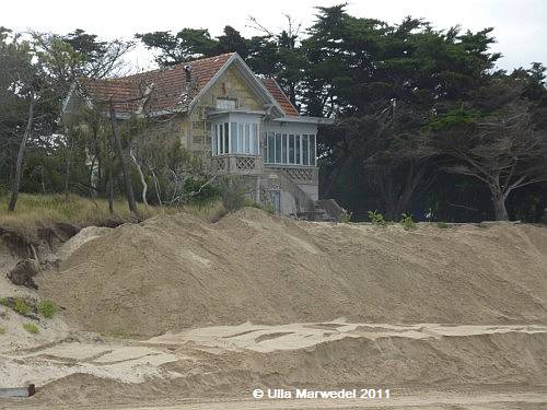 Das schon mehrfach gezeigte bedrohte Haus. Es scheint, dass oben an der Bruchkante kein Sand verschwunden ist.
