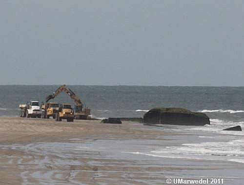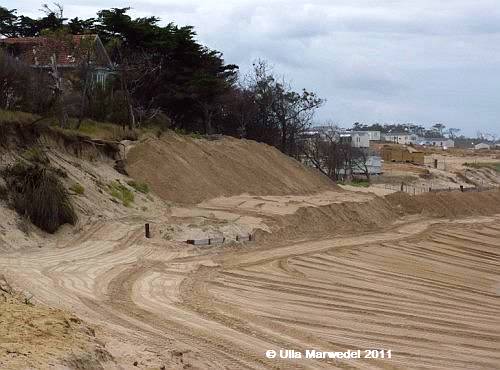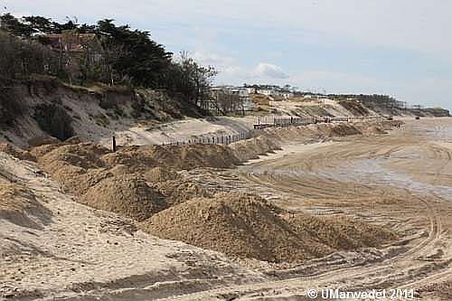 Diesmal ist sogar der obere Dünenbereich wieder aufgefüllt worden. Fraglich allerdings, ob das den Bewohnern des Hauses wirklich ein Gefühl der Sicherheit geben kann.