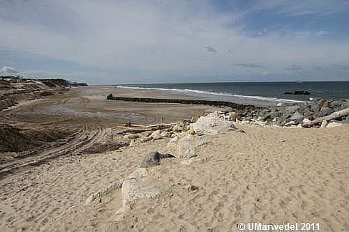 Der am Fuß der Düne vor dem Campingplatz aufgebaute Schutz aus Felsbrocken hat sich offensichtlich bewährt.