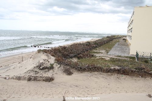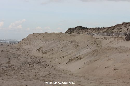 die am rechten Bildrand zu sehen ist, ist ein kompakter Sandwall aufgeschüttet