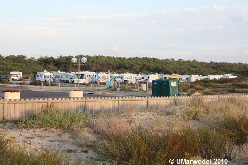 Entspannte Stimmung bei den Wohnmobilen. Die wissen, dass sie heute nicht mehr auf Tour müssen.