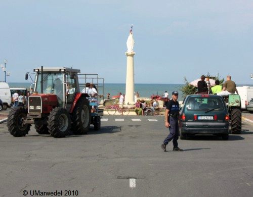 Kein Waldbrand in Monta, sondern das Ergebnis mehrerer startender Trecker, die sich darauf freuen, die avenue de l'Océan herabfahren zu können.