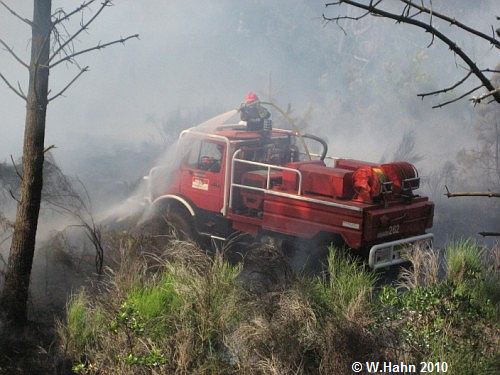 Ohne den geländegängigen Unimog hätte man wenig Chancen, dem Feuer den Garaus zu machen.