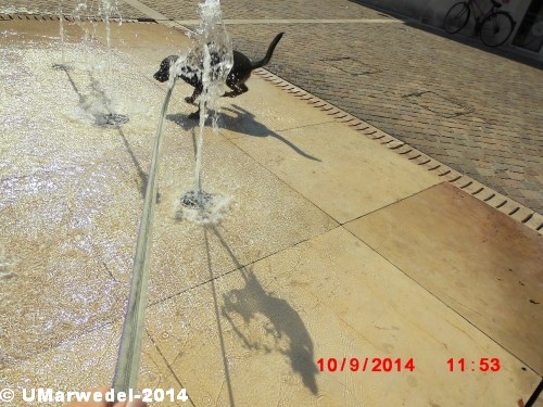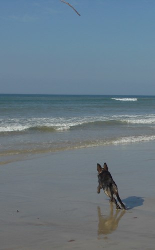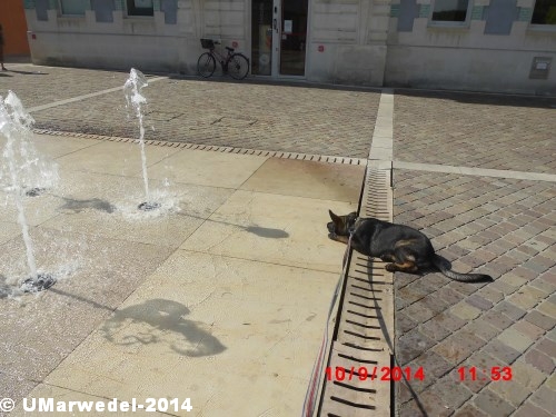 Vor dem ehemaligen Casino in Soulac: Neun Dinger, die sich verdächtig bewegen. Golo hält erstmal auf Abstand.