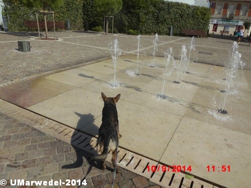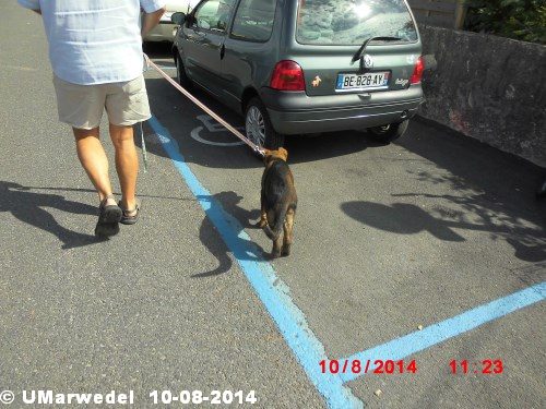 Hach, ist der nüüdelig, natürlich französich, hört sich dann irgendwie so an: regarde, comme il est beau. Also, ich lern französisch, ich will ja nicht jahrelang im Médoc rummachen und nicht mal fragen können, wo der Bär tanzt.