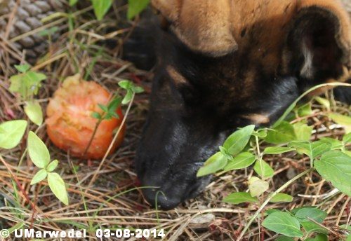 Schlussbild: die Tomate ist fast vertilgt. Golo weiß jetzt, was er von Tomaten halten soll.