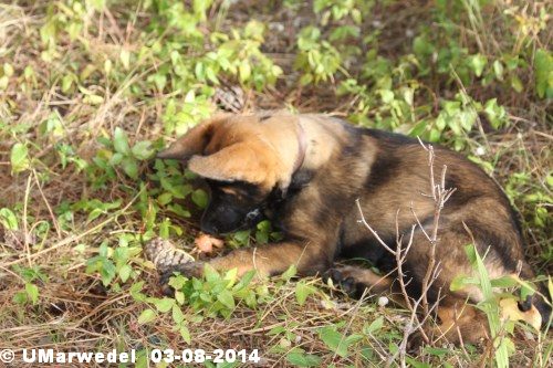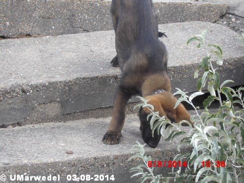 Es gibt so manches, was junge Hunde erst mal lernen müssen. Dazu gehört auch das Thema Treppen. Wer seine Jugend in Euronat verbringt, braucht da schon Übungsmöglichkeiten. Die haben wir gefunden, am ehemaligen Restaurantbunker nämlich.
