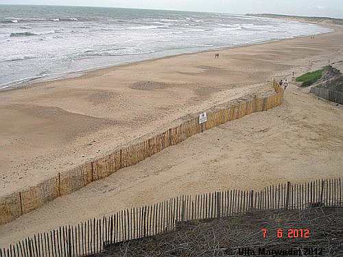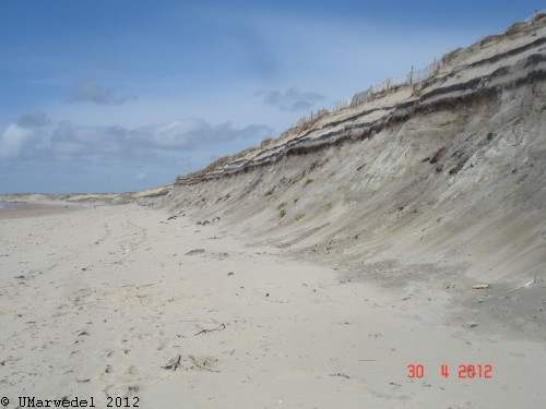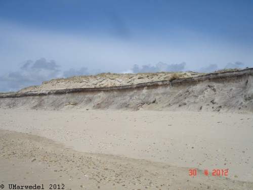 Die Dünenkante nördlich vom Hauptabgang in Le Gurp. Eine richtige Steilküste und dazu wie mit dem Lineal gezogen.