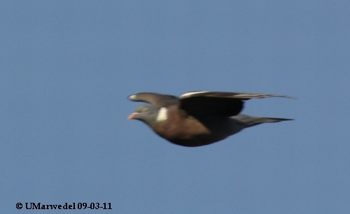 Noch eine Ringeltaube, diesmal im Flugbetrieb