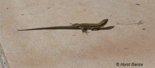Gehören in Euronat zum festen Bestand jeder halbwegs sonnigen Terrasse: Eidechsen von ganz klein bis, wie hier zu sehen, ganz groß.