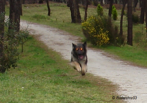 Ein Irrläufer, der eigentlich nicht in diese Rubrik hineinsollte. Da so schnell unterwegs, aber nicht aufzuhalten. Leicht zu erkennen: ein Redaktionsmitglied bei einer Umschulungsmaßnahme zum fliegenden Hund. Flughöhe und -geschwindigkeit überzeugen schon, an der Flugweite muss allerdings noch gearbeitet werden.