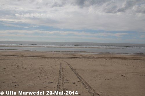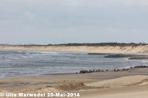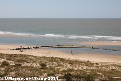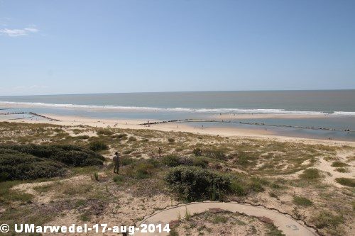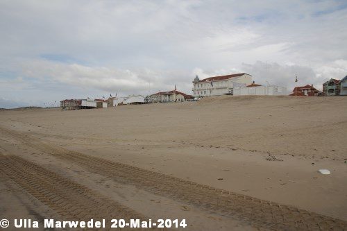 Blick nach Süden Richtung Soulac. Am linken Bildrand zu erkennen, wenn man weiß, was da steht: das Appartementhaus Le Signal