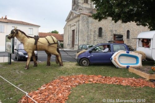 So ganz ohne Auto geht die Chose offenbar nicht, aber diese Benzinkutsche hat dort, wo einst ein übelriechender Vierzylinder werkelte, jetzt ein Gelass, in dem Heu transportiert wird.