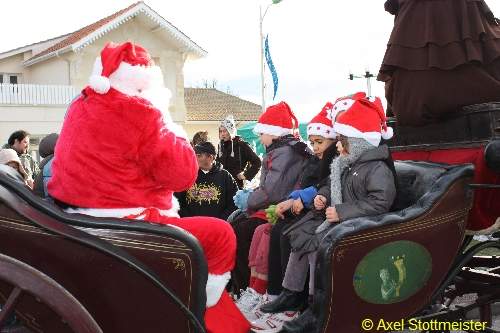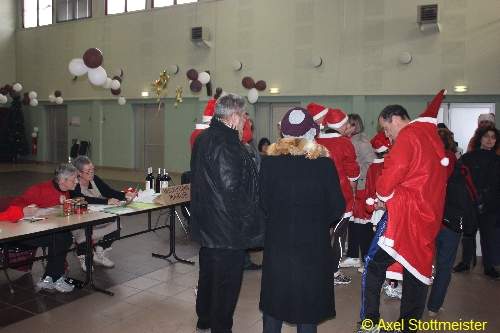 Es starteten dann um 14:00 Uhr 51 Kinder und Jugendliche „ Lutins „ (Übersetzung Anim: Kobolde) in ihren Kostümen als Weihnachtsmänner. ( Voraussetzung für eine Teilnahme ! )