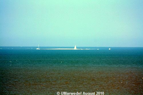 Dieselbe Insel bei etwas anderen Lichtverhältnissen. Diese und die nächsten Aufnahmen sind gemacht worden von der Pointe de Grave aus mit einem relativ starken Teleobjektiv.