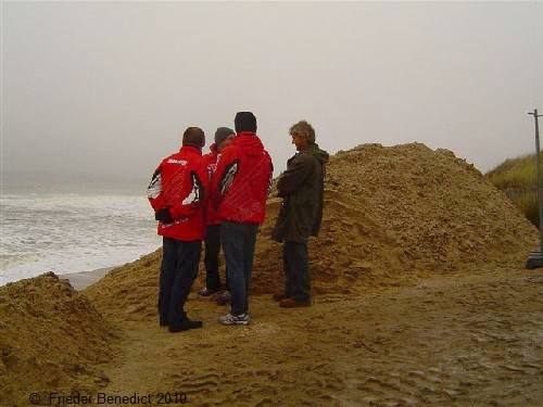 Ein Teil der Rennstrecke führt über den Strand, was jedoch nur bei Ebbe ohne allzuviele Spritzer geht. Zuvor, und das sieht man hier, kann aber schon die Abfahrt zur Strandstrecke vorbereitet werden.