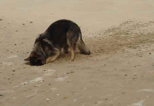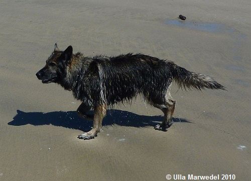 Unser neuer Mitarbeiter Timon bei einer seiner liebsten Beschäftigungen: Strand beobachten, hier Blick nach Süden