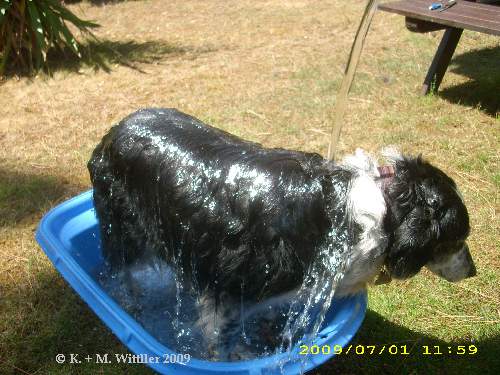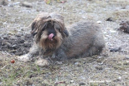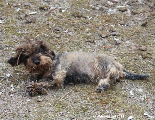 Momentan wenig Augenmerk auf das Stöckchen im Hintergrund. Hier muss erstmal die ramponierte Frisur ins Lot gebracht werden. Gar nicht so einfach, wie man sieht.