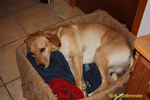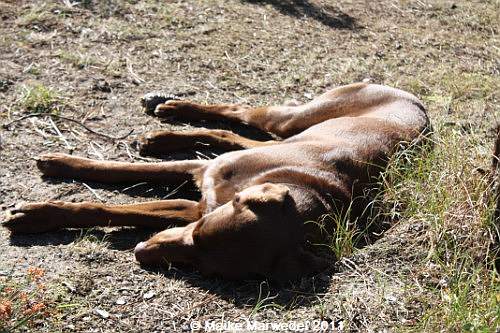 Timon bei einer Entspannungsübung. Die anderen sind ganz gelb vor Neid. Von denen kann nämlich keiner den einläufigen Schongalopp, der hier lässig demonstriert wird.