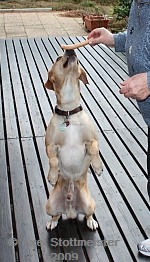 Irgendjemand hat gesagt, auf diesem Bild sitze Pepsi vor ihrem neuen Lieblingsstöckchen. Glauben wir noch nicht. Irgendetwas scheint da nicht zu stimmen. Sobald wir heraushaben, was es ist, geben wir Laut.